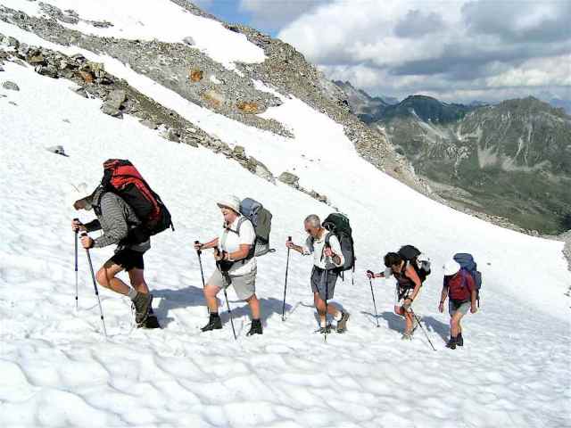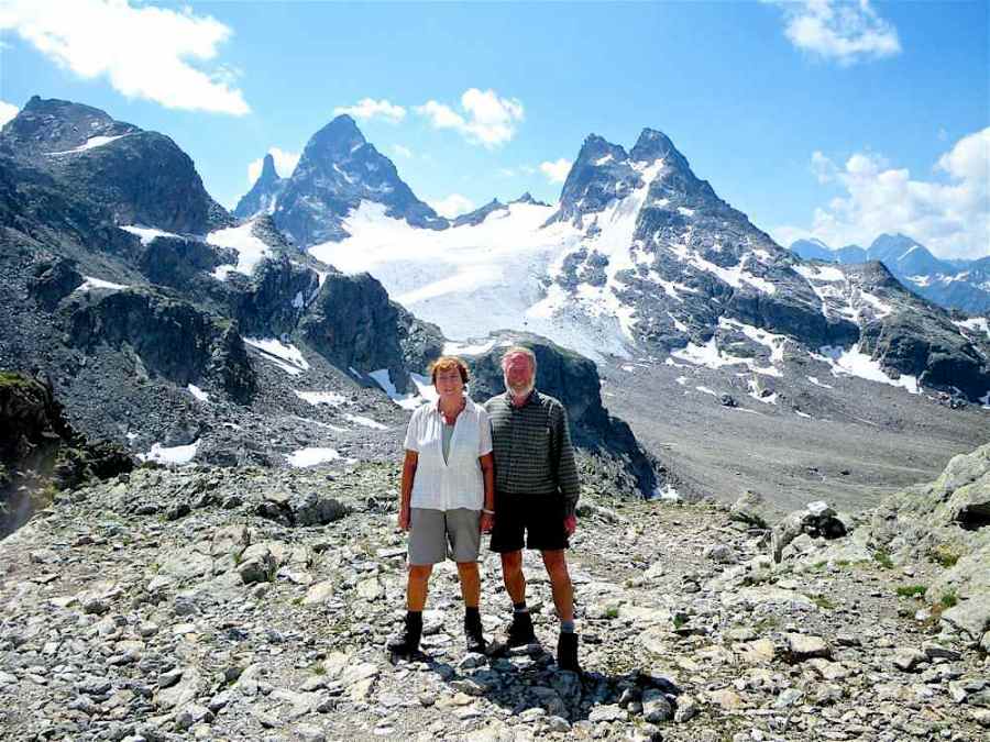 The first half of the route followed the section of the Rätikon Höhenweg from the Douglass hut to Gargellen, with whole-day excursions to Schesaplana (at 2965 m the highest in the group) and to Sulzfluh (2818 m). The second half was continuous and went through the Silvretta Alps from Gargellen to Bielerhöhe, including the interesting crossing of the Platten, Schweizer and Kromer glaciers between the Tübinger and Saarbrücker huts. Storms prevented the planned crossing of Getschner Scharte from the Wiesbadener hut to the Jamtal hut to finish down Jamtal to Galtür, and we retreated to finish back at the Madlener hut at Bielerhöhe