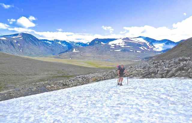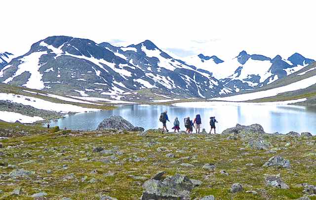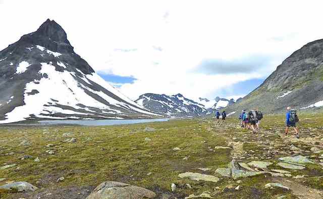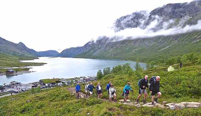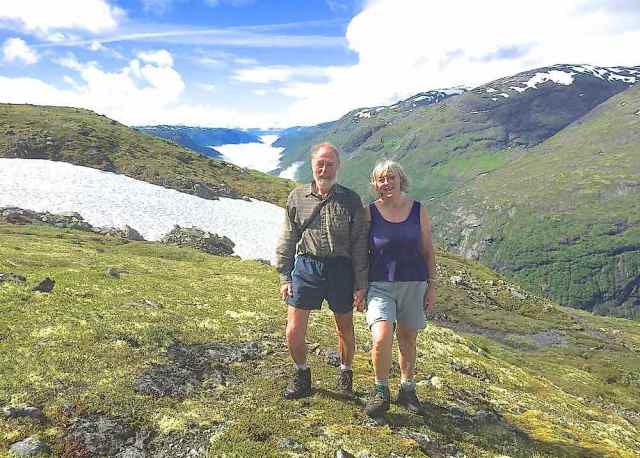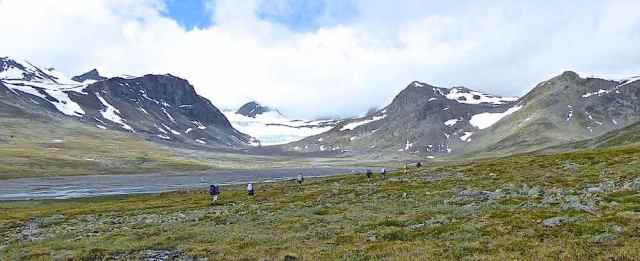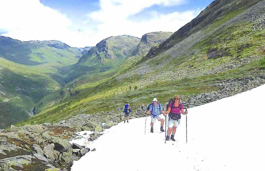 Shorter than our usual trekking routes, this year’s route was a 6-day continuous east-to-west crossing of the Jotunheimen National Park, with a rest day at the Spiterstulen hut half way. We were aware that hut-to-hut distances were considerably longer than our usual average in the Alps, with less ascent and descent on most days, but the uneven, bouldery nature of large stretches of the paths made a steady walking pace difficult and contributed to some very long and tiring days. Nevertheless we enjoyed some spectacular scenery and completed the route with a sense of achievement and satisfaction.
